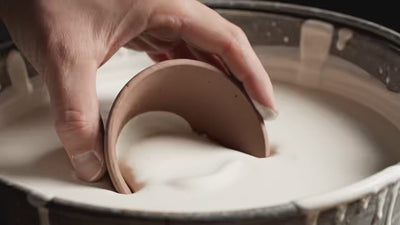 After an optional bisque firing, the gaiwan receives its aesthetic finish. Designs, such as cobalt for "Blue and White," are painted onto the clay. The pieces are then dipped in liquid glaze. Crucially, the potter must wipe the glaze clean from the bowl's foot and the lid's seating rim to prevent them from fusing together during the final firing.