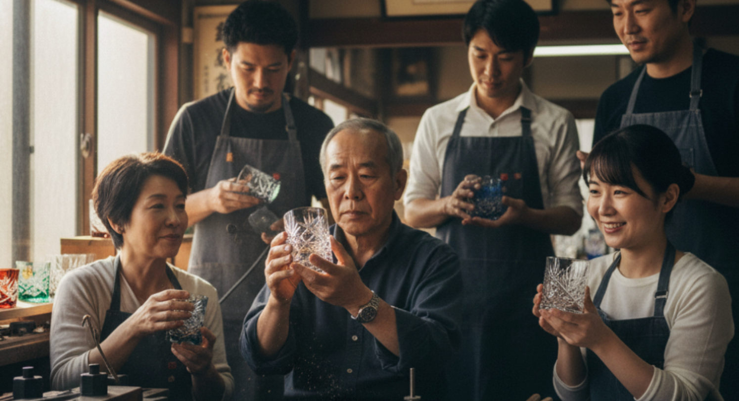 Behold the journey of glass transformed. Each piece of Edo Kiriko is born from the hands of a master artisan, who, through a series of meticulous and precise stages, sculpts, carves, and polishes raw material into a dazzling work of art. The result is a symphony of light and pattern, a testament to the harmony of skill and tradition.