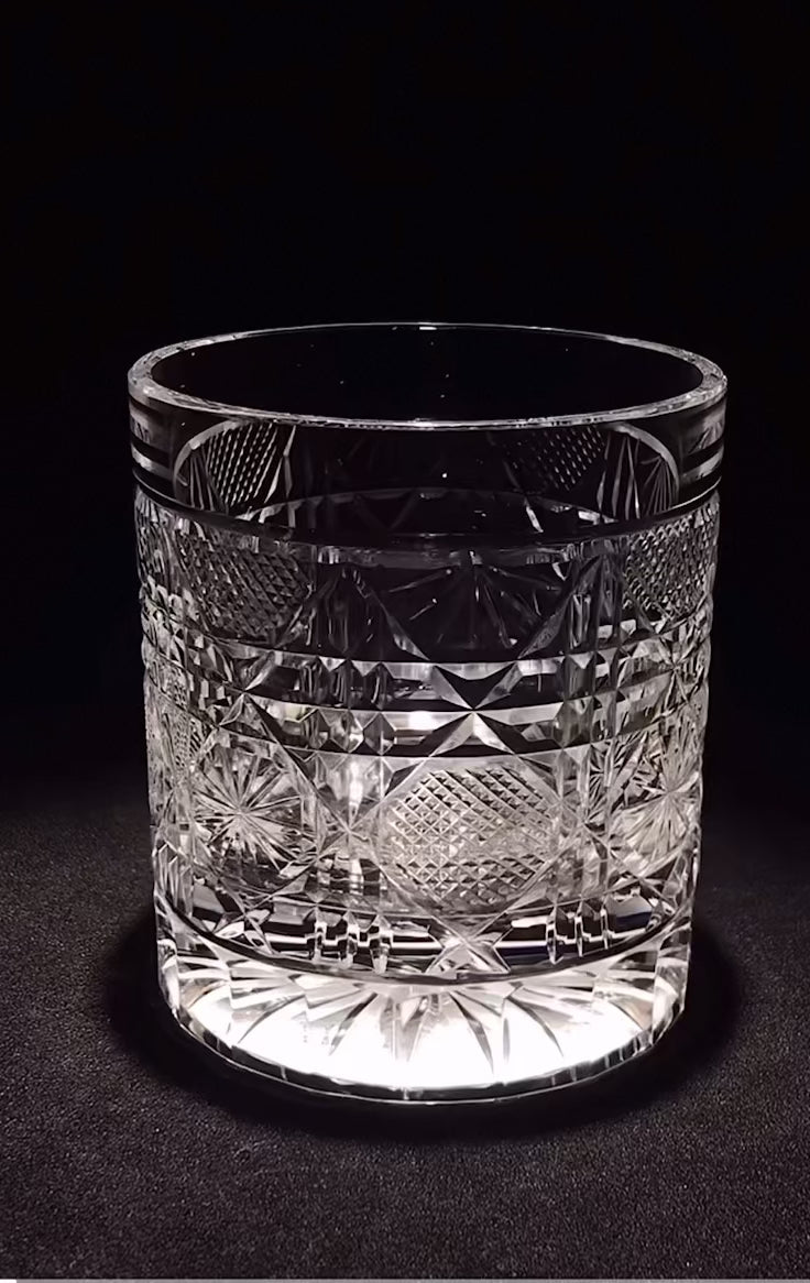 Inspired by the revered imperial symbol of Japan, the chrysanthemum (Kiku), combined with the powerful geometry of an octagon, the intricate patterns etched into this crystal glass evoke a sense of perfect balance and enduring strength. The "Octagonal Chrysanthemum" motif offers a modern, striking interpretation of a classic symbol of longevity, rejuvenation, nobility, and prosperity. Holding this glass invites contemplation of its structured beauty, making every sip an experience steeped in both ancient wisdom and contemporary design. The brilliant clarity of the crystal allows the rich hues of your favorite spirit to beautifully refract through the multifaceted design, enhancing the visual splendor.