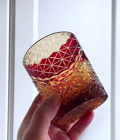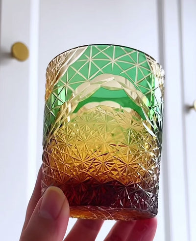 Edo Kiriko is a celebrated national traditional craft of Japan, known for its meticulous cut-glass techniques. Each glass is a unique work of art, meticulously handcrafted by a skilled artisan who carves and polishes the crystal. The deep, delicate cuts create a mesmerizing pattern that captures and reflects light, showcasing the brilliance of the crystal.