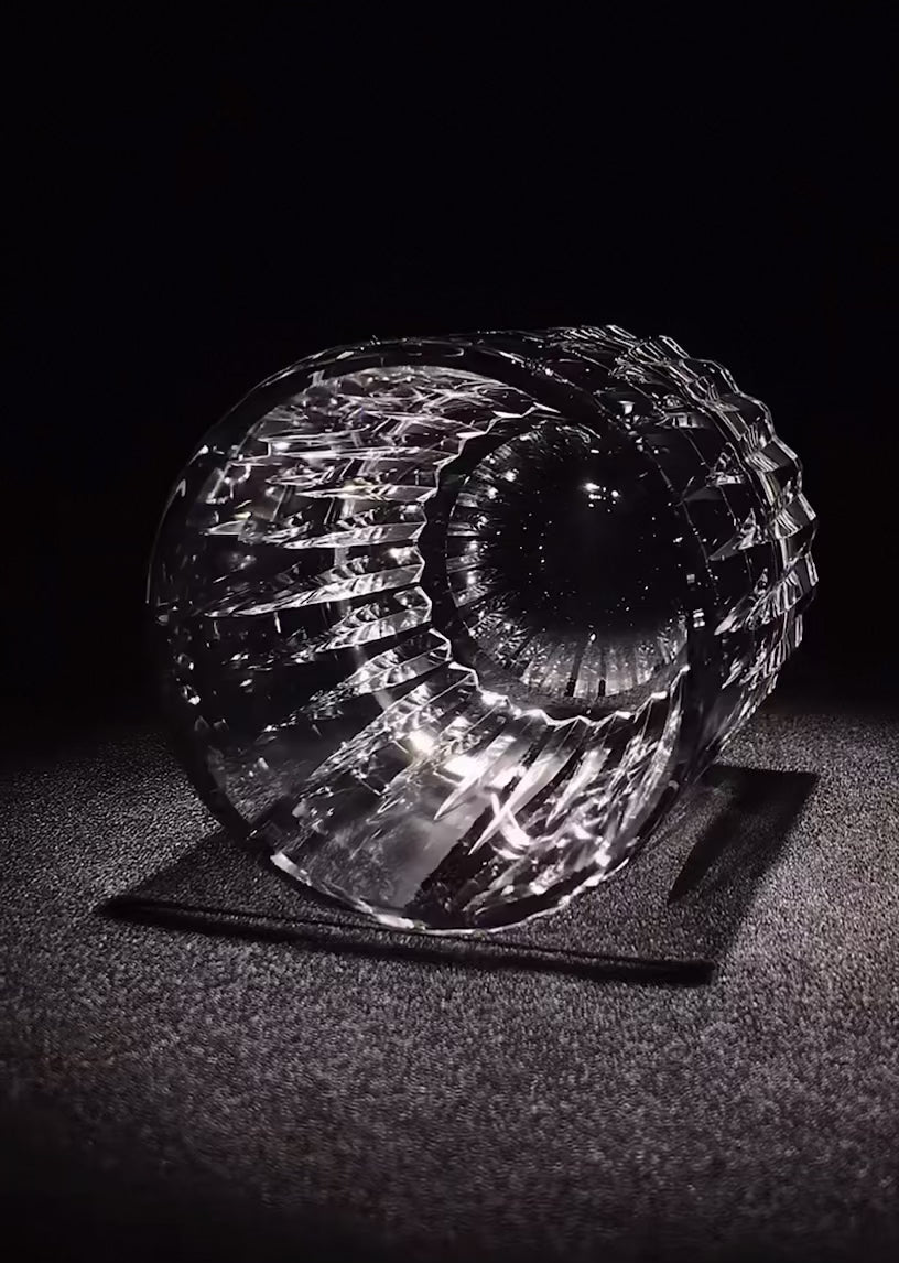 This is followed by a phase of exquisite refinement. The same cuts are revisited with a finer-grit wheel, allowing for the precise sharpening of each line and the addition of the delicate, intricate motifs that are the hallmark of traditional Edo Kiriko.