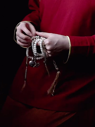 This Tibetan-style mala, crafted from authentic white Bodhi root, is a versatile and meaningful piece for both men and women. With 108 beads, it can be worn as a necklace or a multi-layered bracelet, serving as a tool for meditation and a beautiful, spiritual accessory.